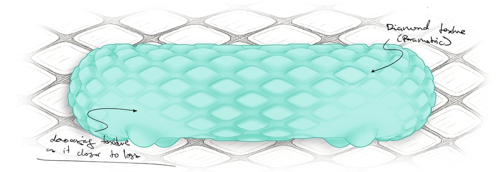 The diamond-shaped surface texture was designed in Grasshopper. By using attractor curves, I was able to control the intensity and distribution of the texture across the surface, adding both visual interest and tactile variation. The result is a dynamic, parametric pattern that enhances the grip and aesthetic of the product.