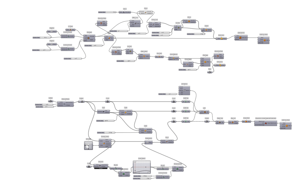 In the process Grasshopper allowed a very fluid formal exploration just changing some parameters of the 3D Design, for example, to change the radius shape, feet position or shape proportions.